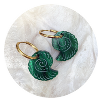 Step into time with these emerald green hoops, etched with delicate fossil-inspired imprints.